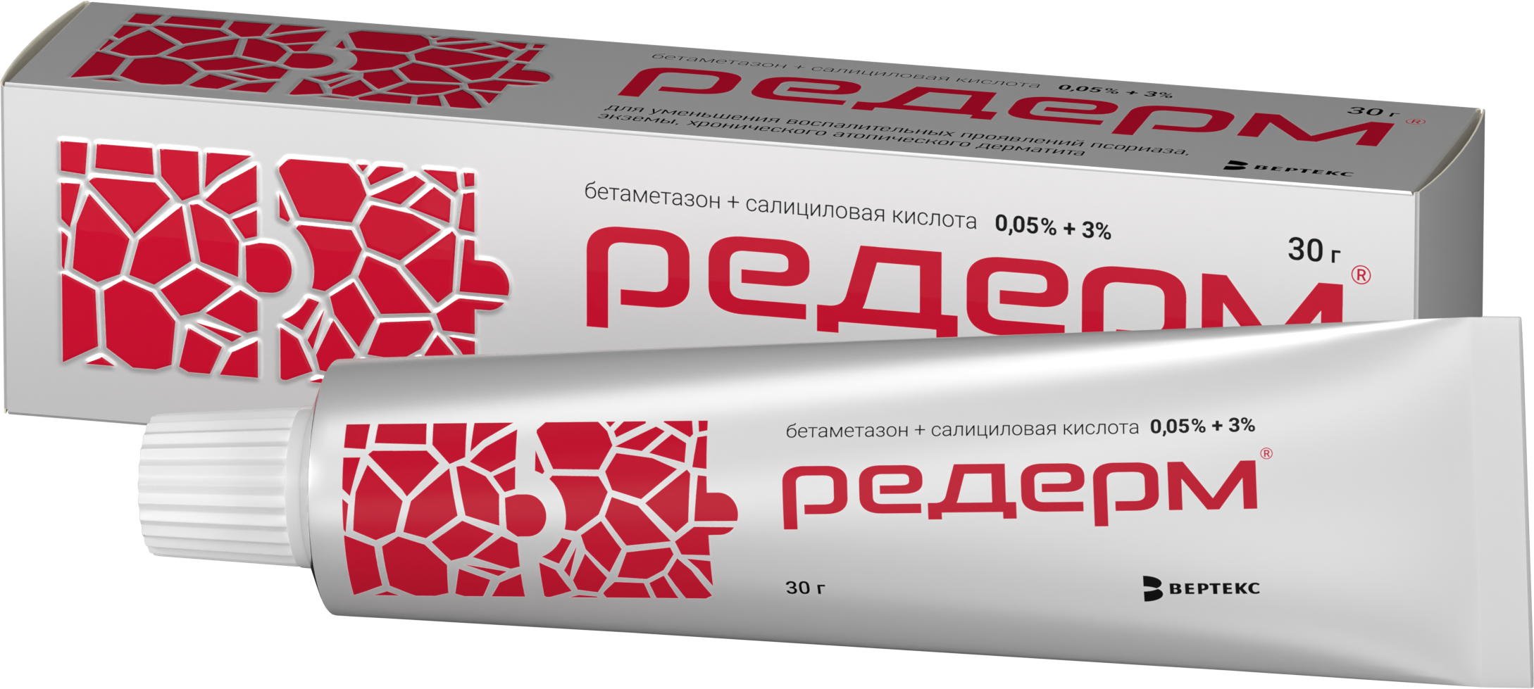 Комбинированный препарат для наружного применения. Оказывает комплексное действие: -размягчает и отшелушивает огрубевшую кожу -снимает красноту и воспаление -устраняет зуд -снижает аллергические проявления РЕДЕРМ® - твой выход!